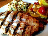Grilled Italian Marinated Chicken, Pesto Couscous, and Sauteed Summer ...