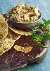 Grilled Shrimp Kabobs, Baba Ganoush with Flatbread, and Apples Dipped ...